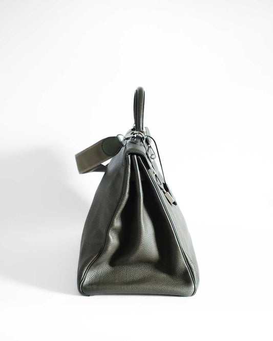 Collectors and luxury connoisseurs value the Kelly 50 Voyage not only for its rarity but also for its investment potential. Whether in classic shades like Gris Etain or unique tones such as Khaki Green, this bag stands as a travel companion that doubles as a statement piece.