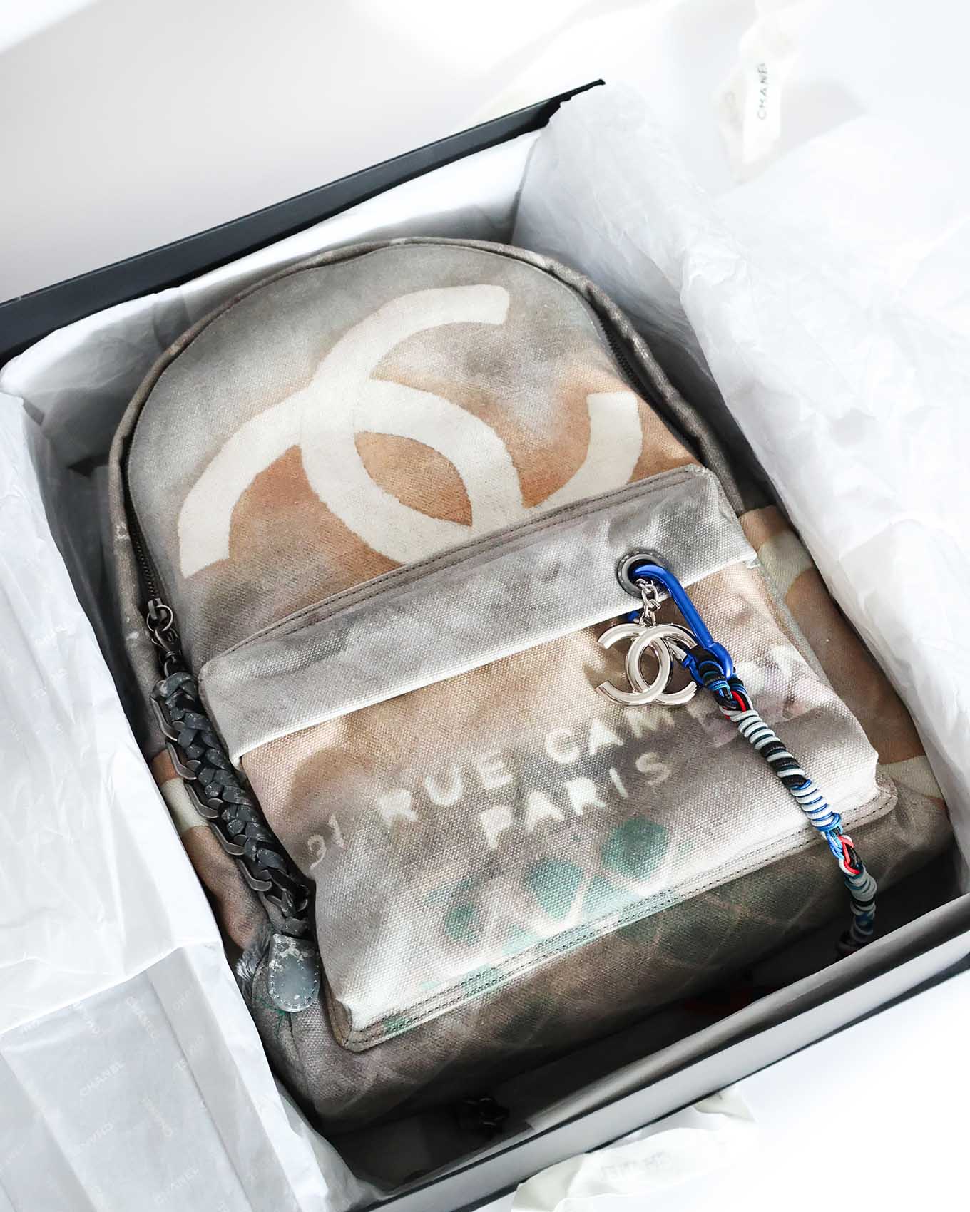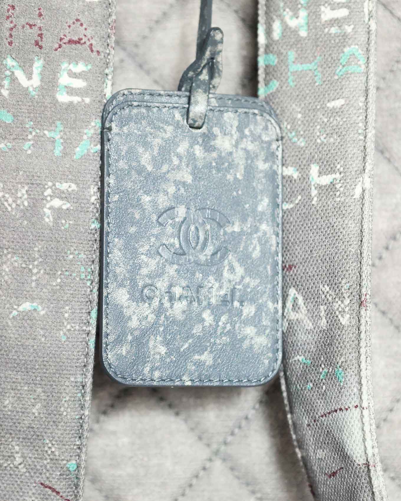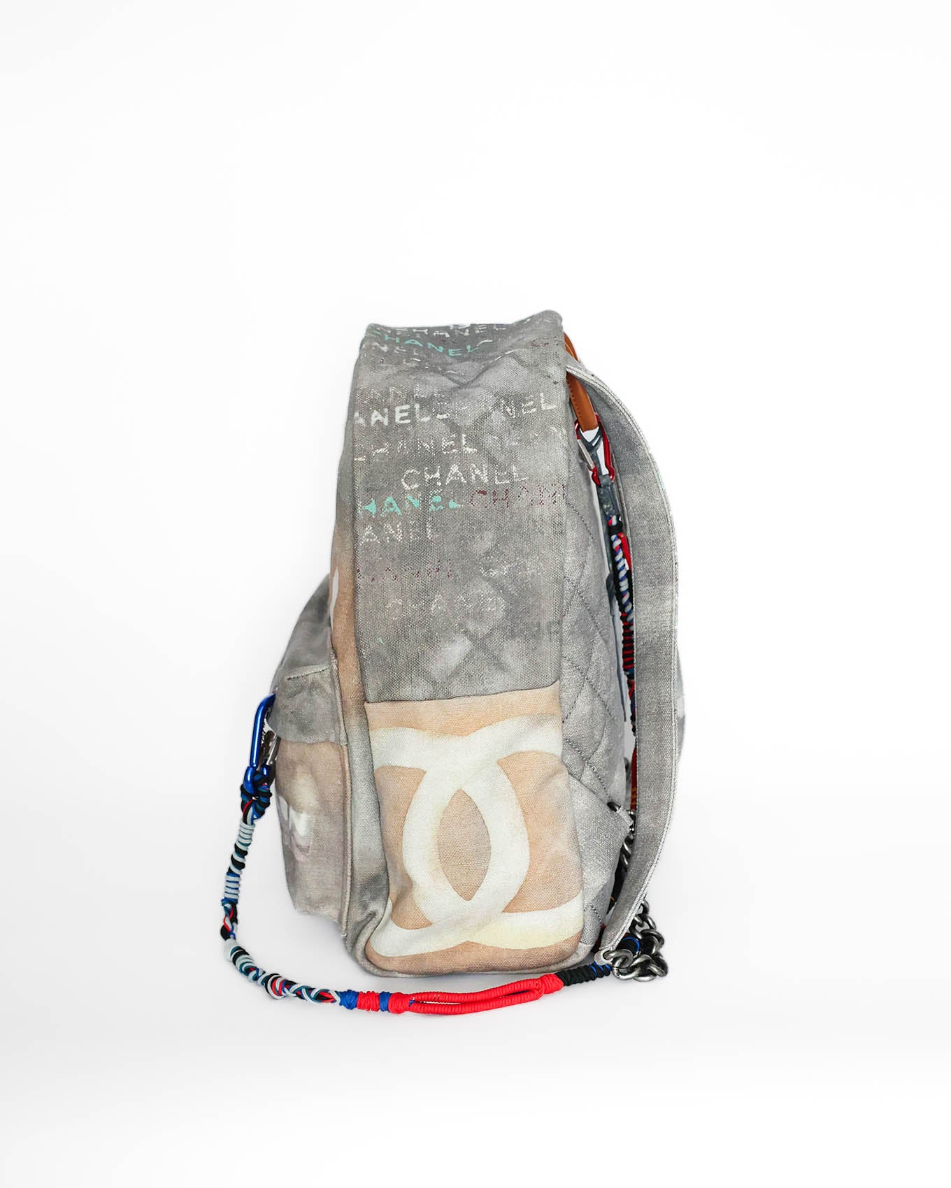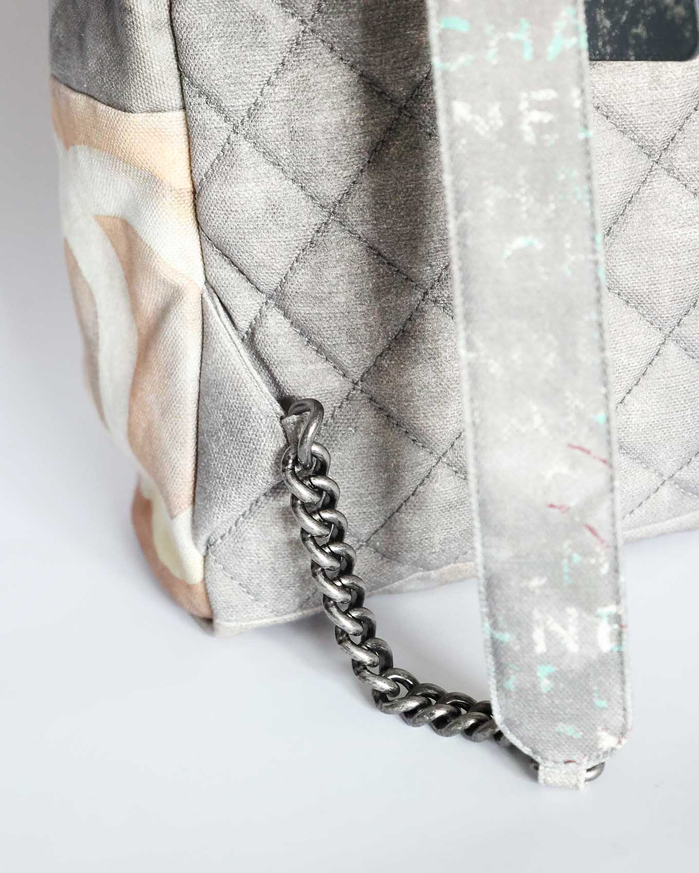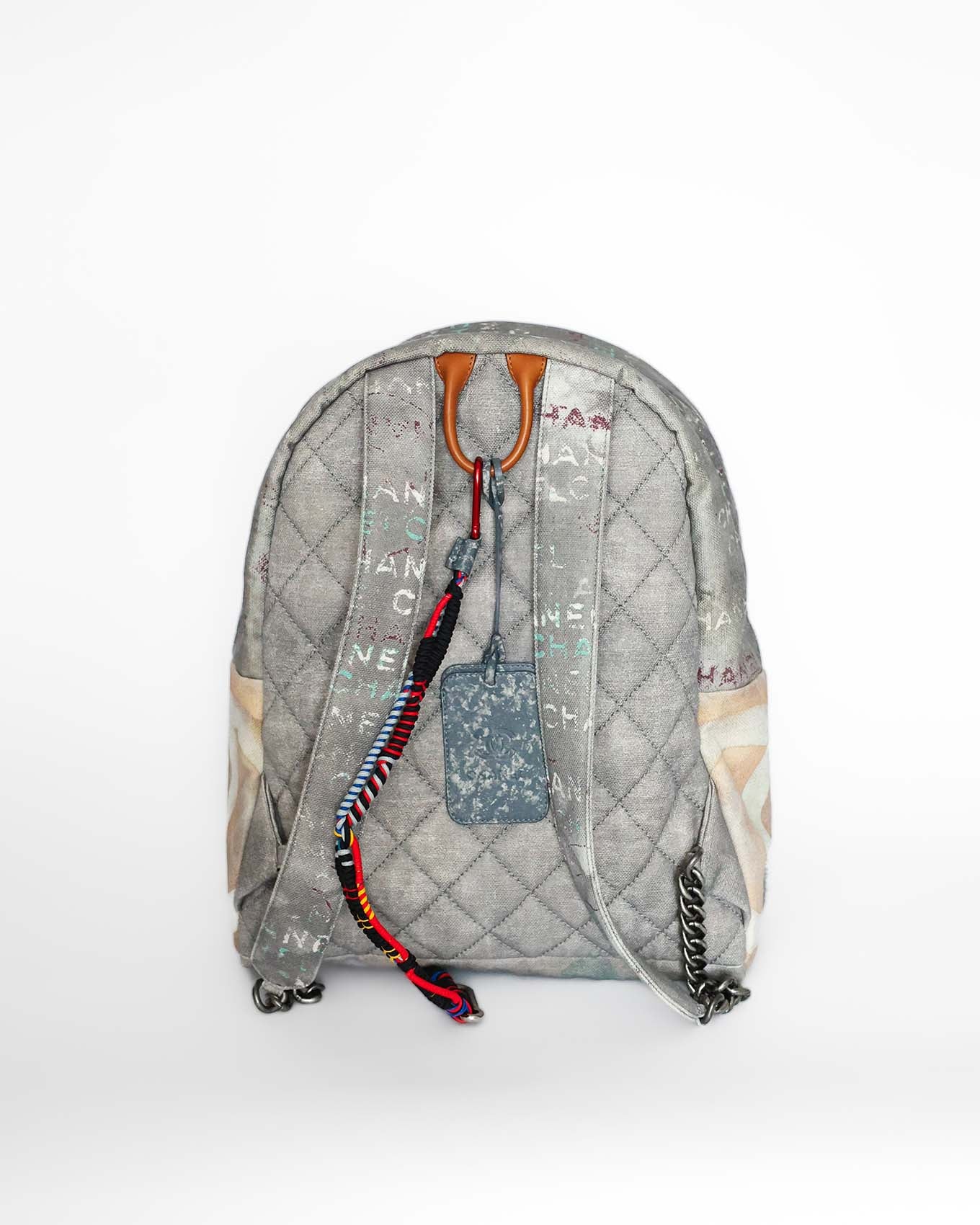Chanel SS14 Artclass Light Grey Canvas Large Graffiti Backpack FULL SET