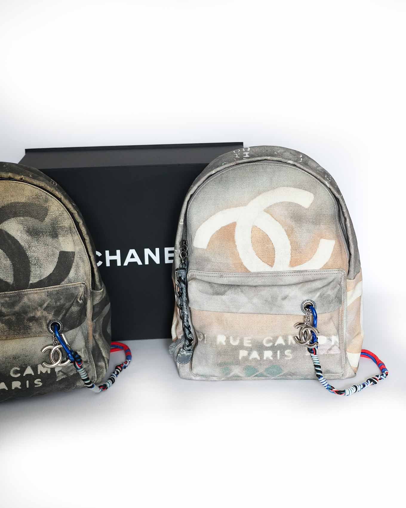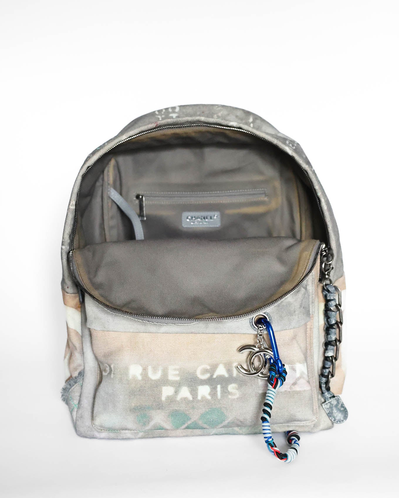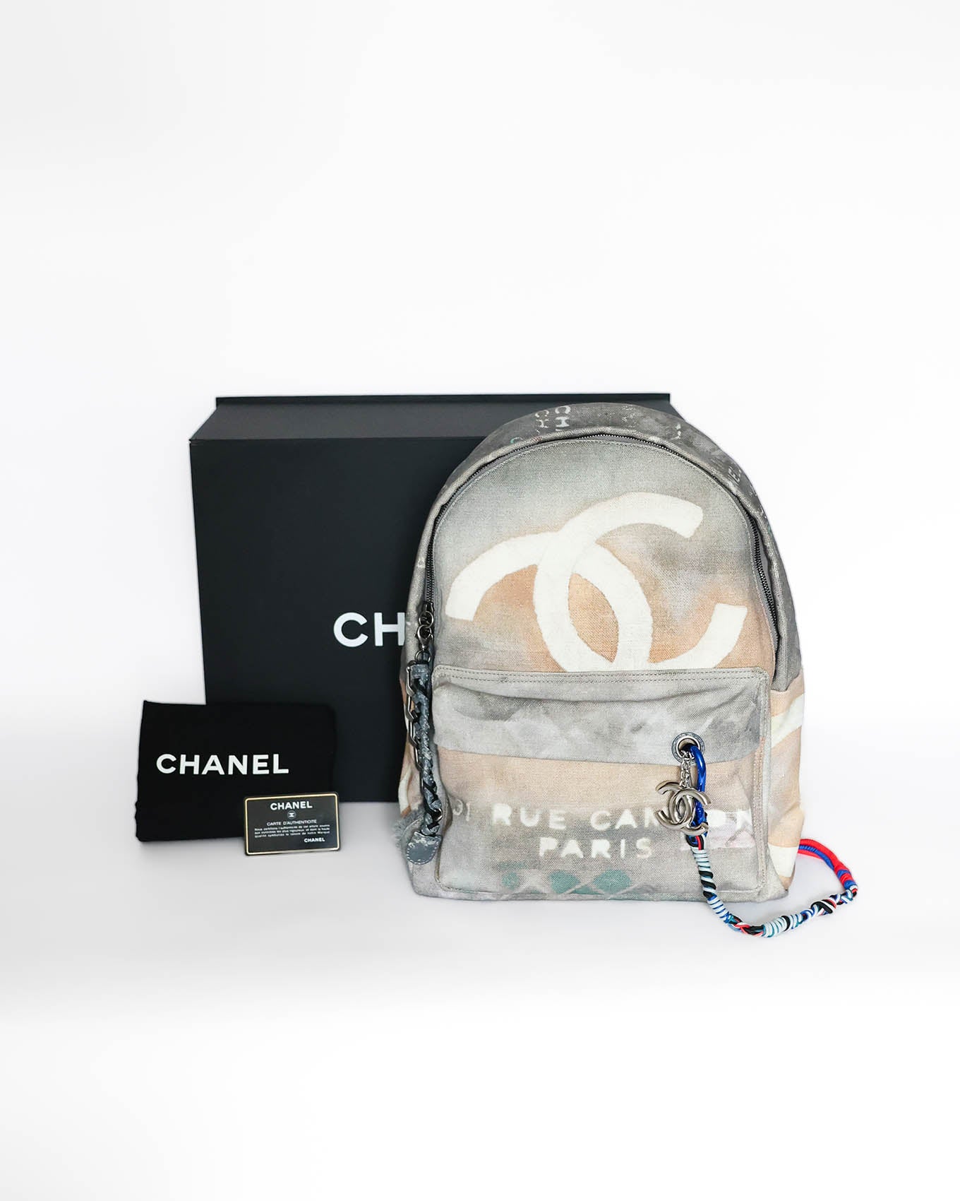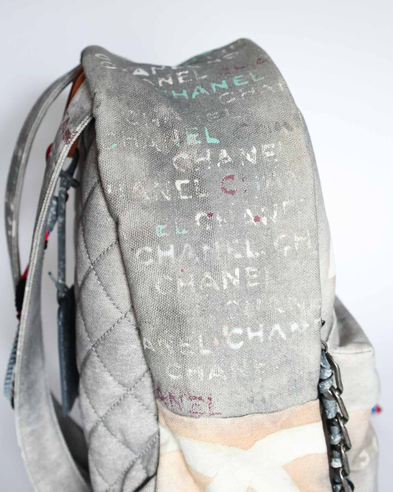 Up for sale is this ultra rare Chanel S/S 2014 Artclass Graffiti canvas backpack in the light grey colorway. The Graffiti backpack is incredibly rare to come up. In Europe it has only been sold at one or two Chanel boutiques to VVIP clients only. A true miracle find.