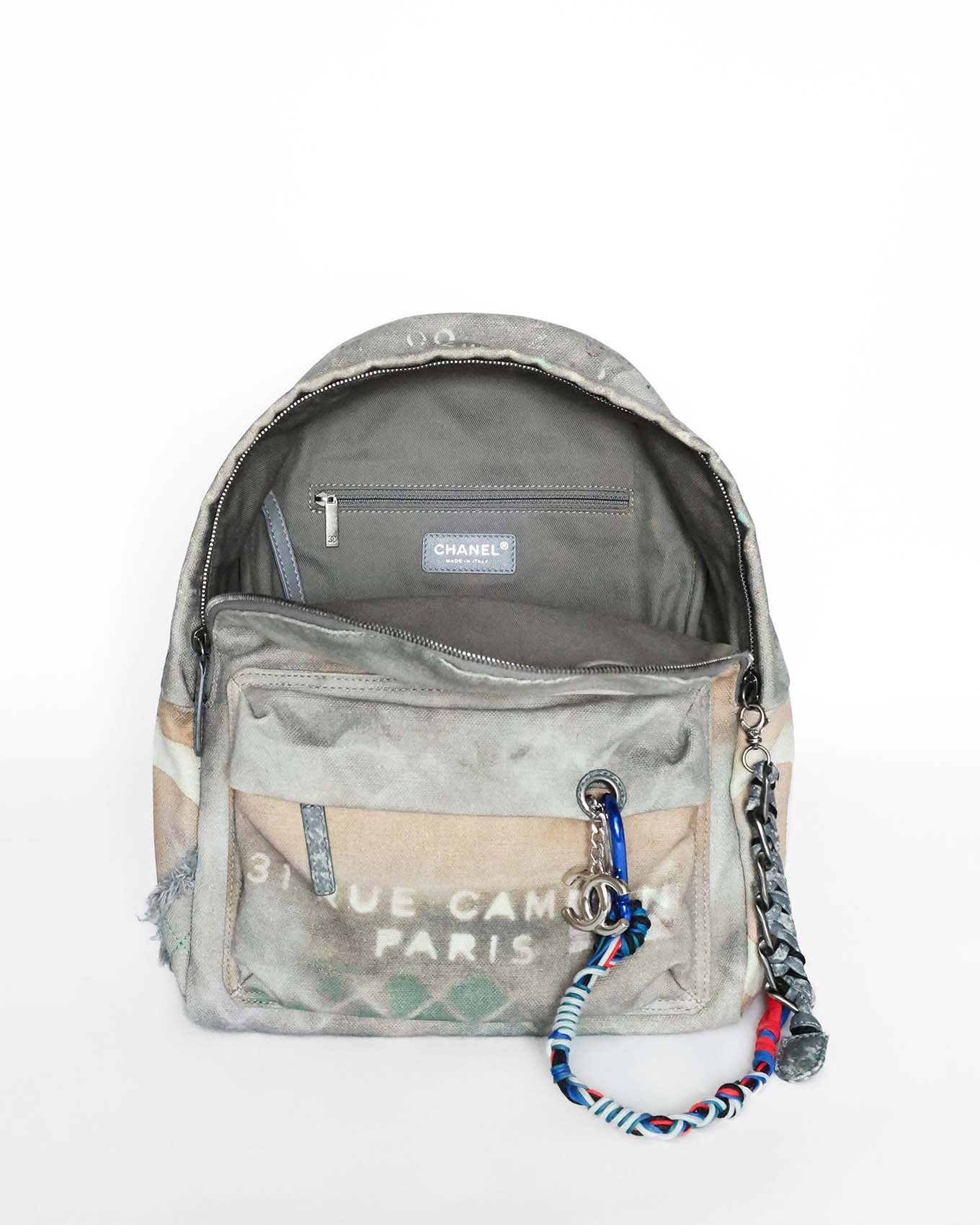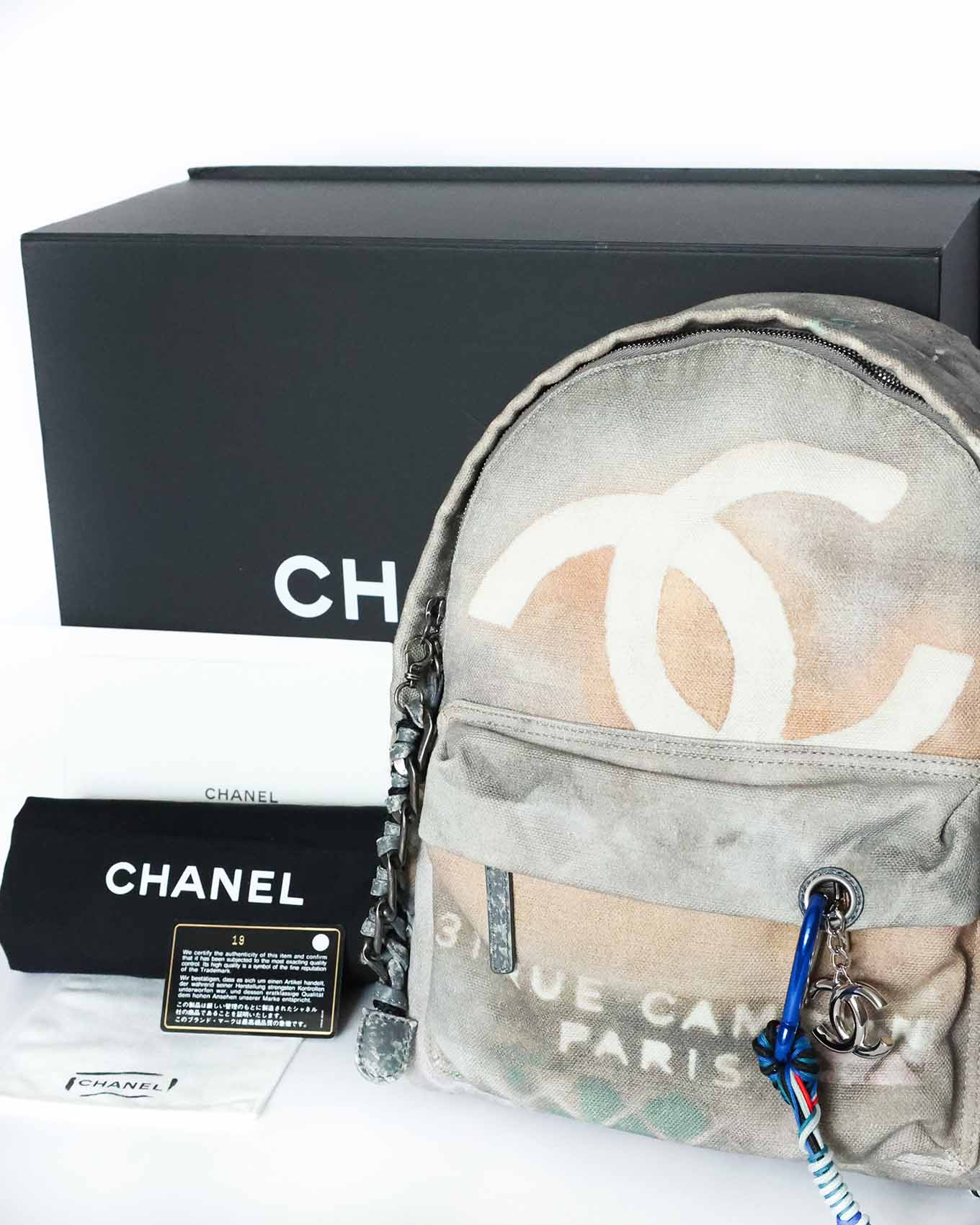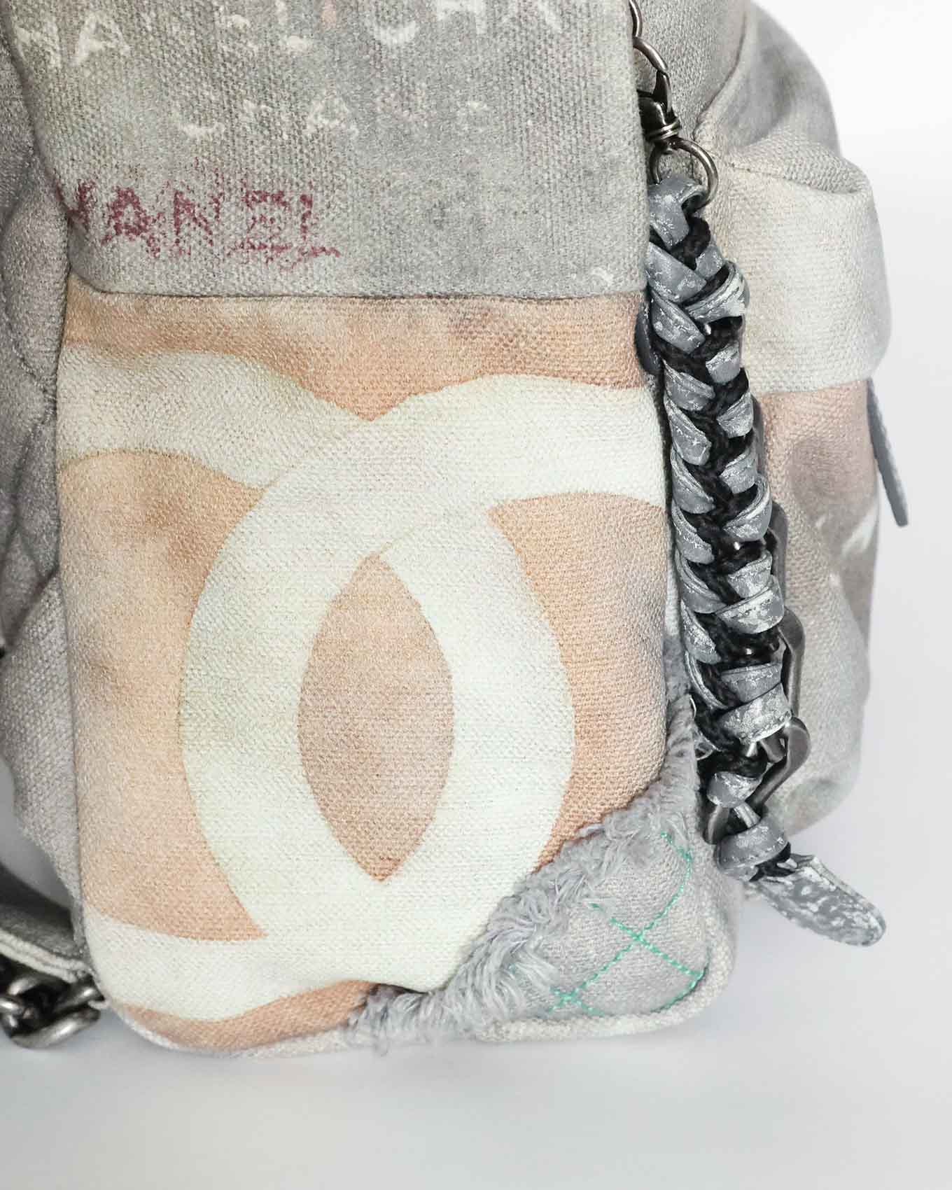 Up for sale is this ultra rare Chanel S/S 2014 Artclass Graffiti canvas backpack in the light grey colorway. The Graffiti backpack is incredibly rare to come up, especially in a like-new condition with full set including the original box. A true miracle find.