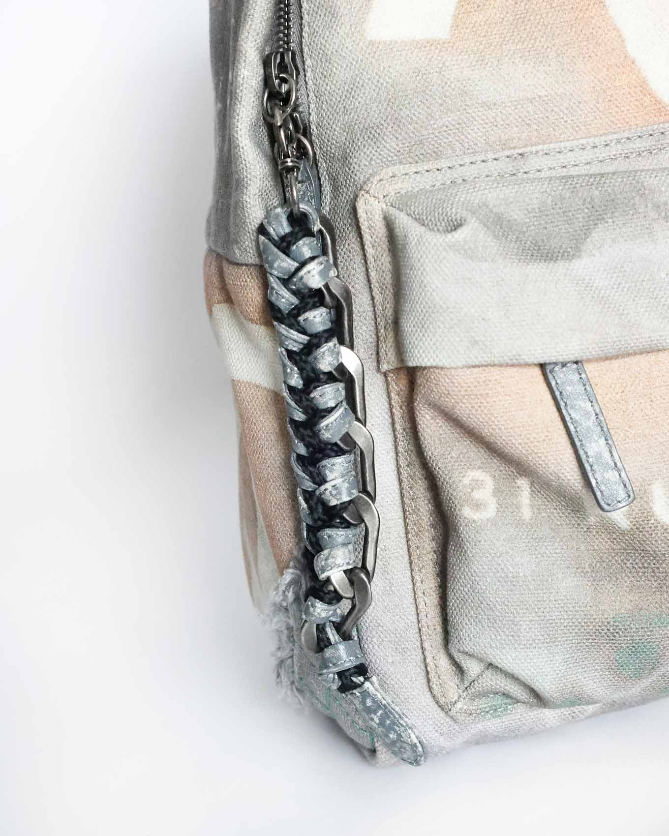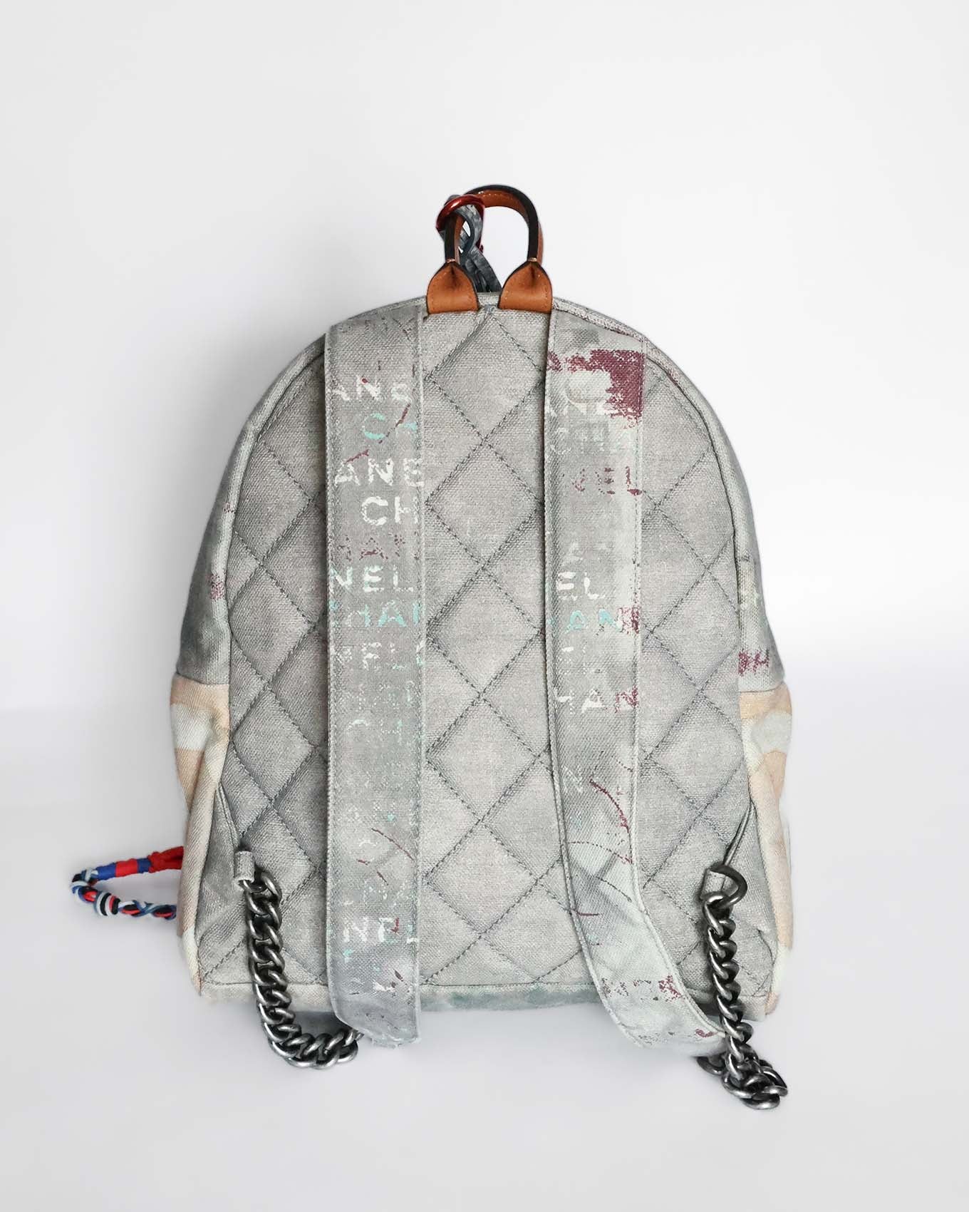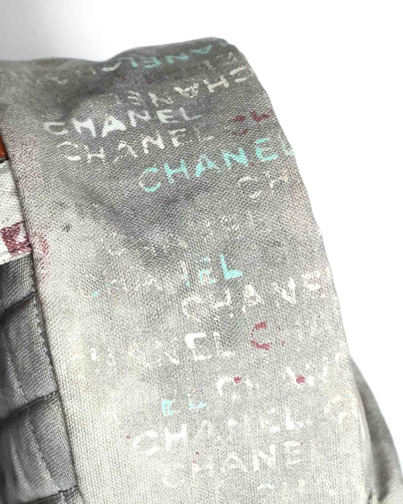 Chanel SS14 Artclass Light Grey Canvas Small Graffiti Backpack FULL SET