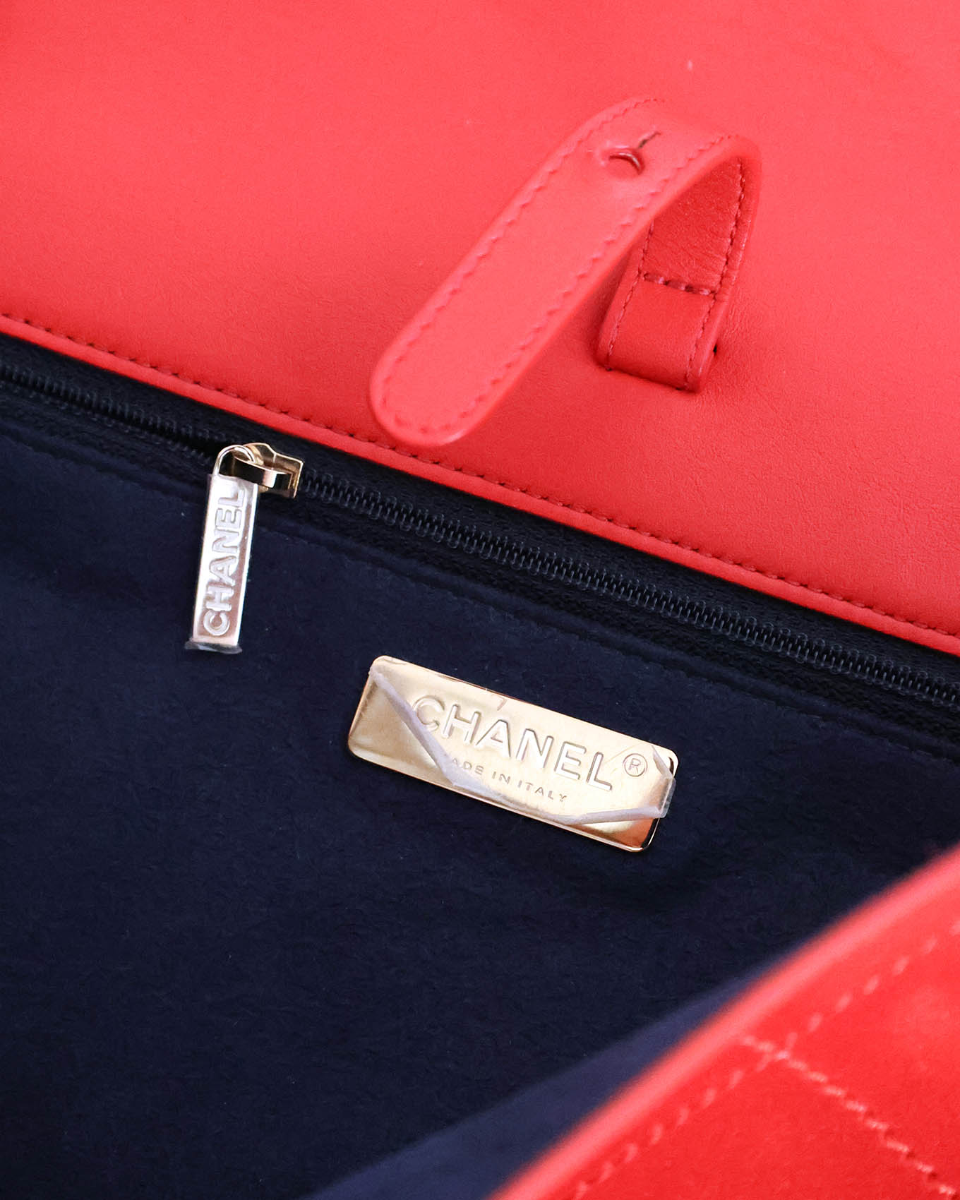 Up for sale is this authentic CHANEL x Pharrell Williams Suede Lambskin XXL Flap Bag in red. This limited edition oversized flap bag from the Pharrell collaboration is constructed of red suede leather and diamond quilted lambskin leather. This stylish bag features a red leather threaded shoulder strap with pad with a Chanel CC turn lock. This opens to blue suede interior with a large zippered pocket.