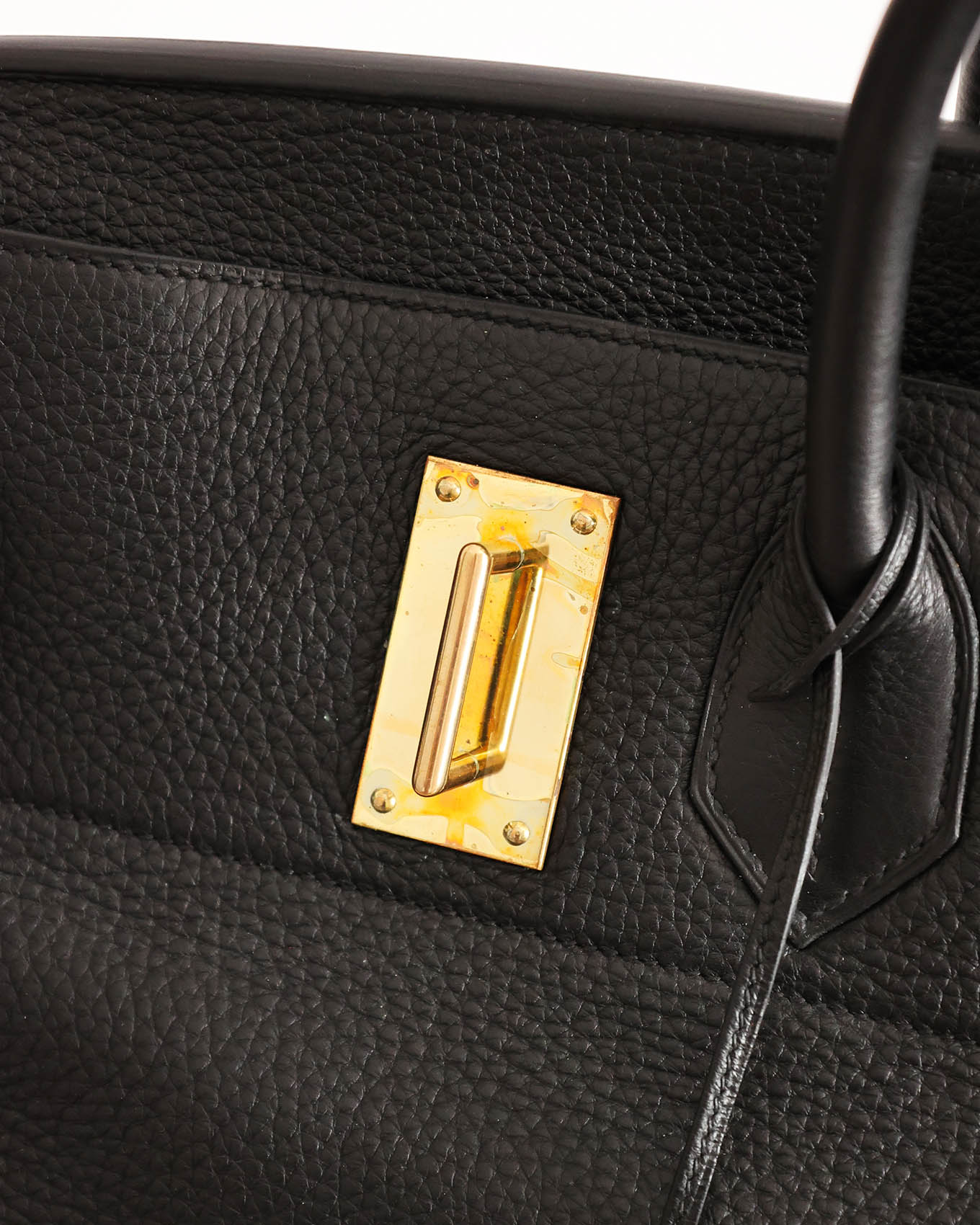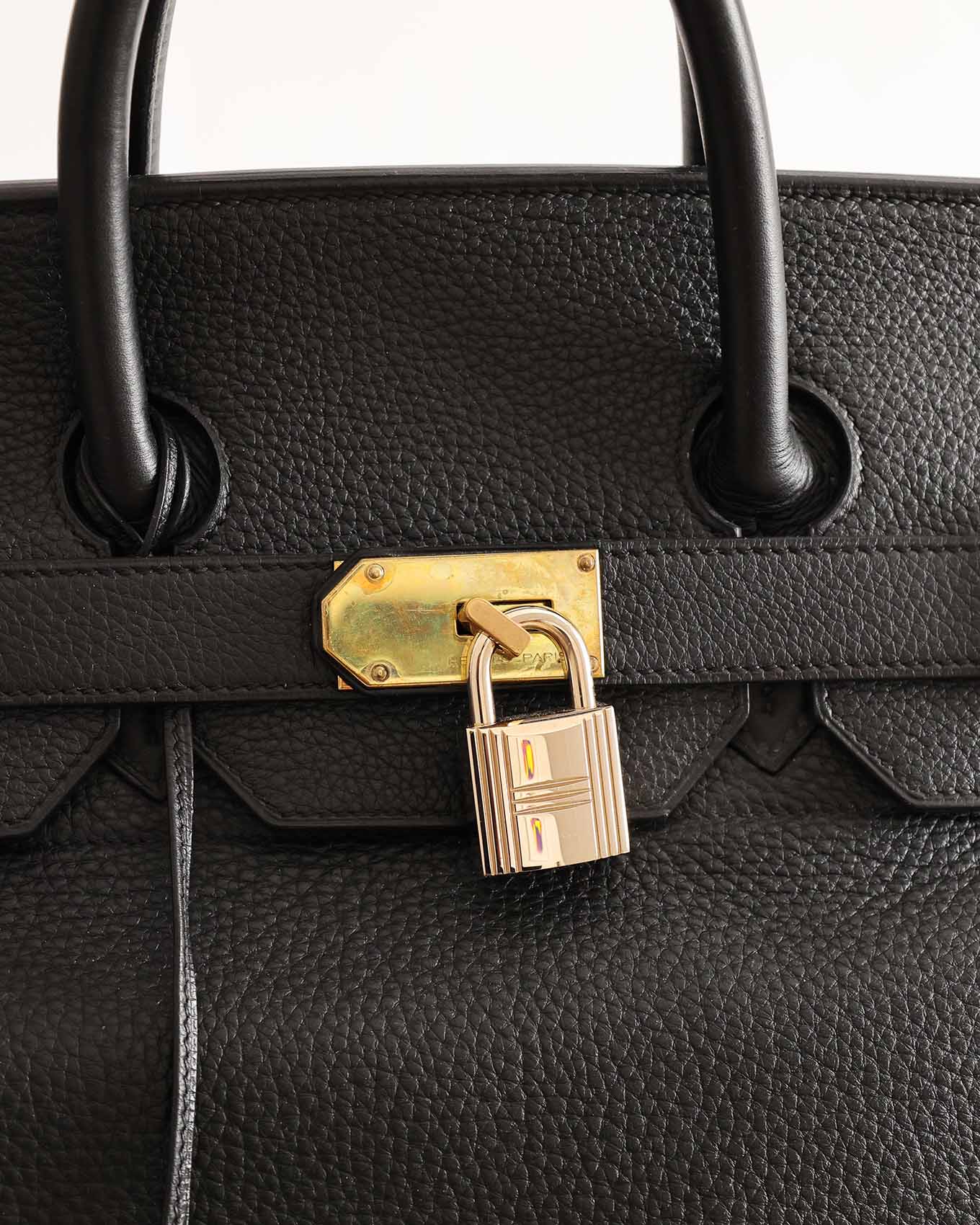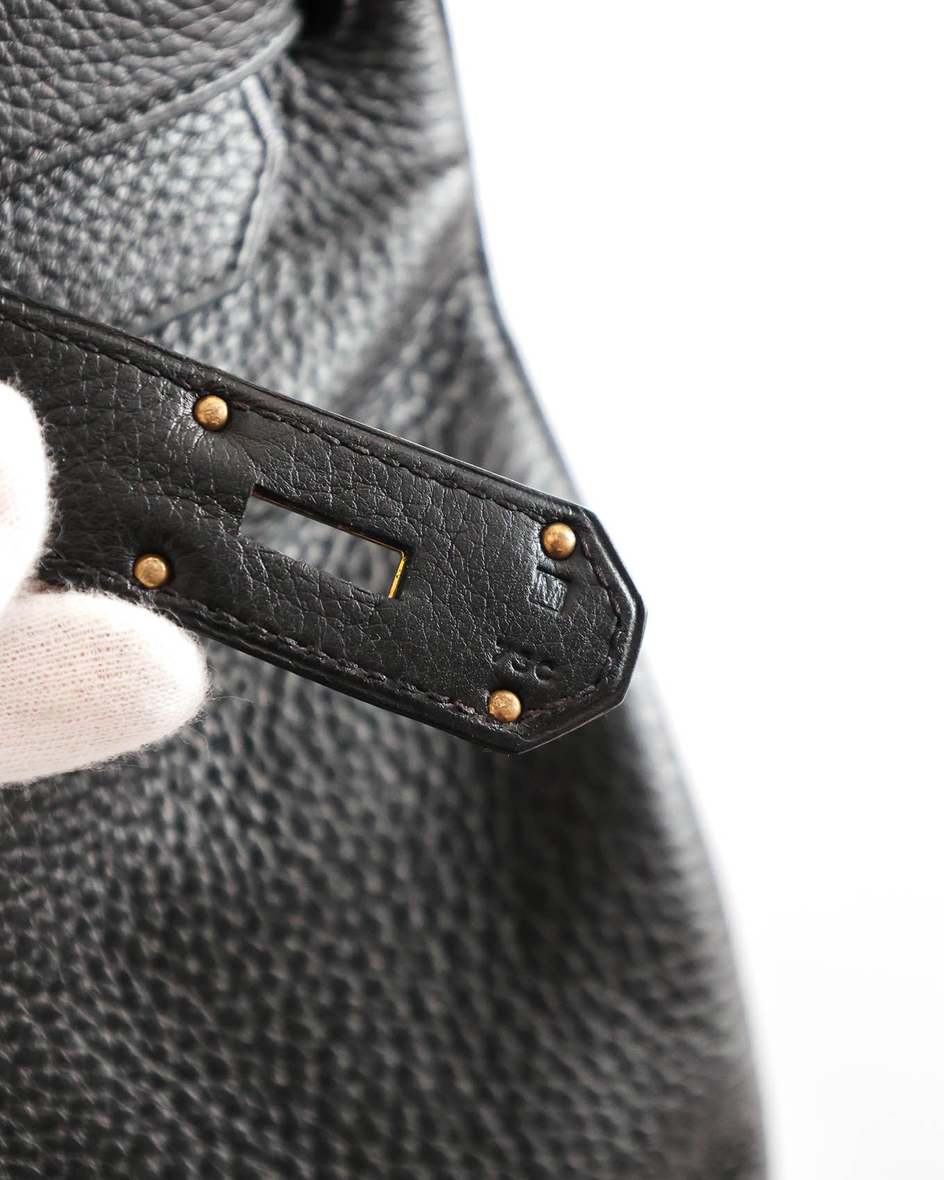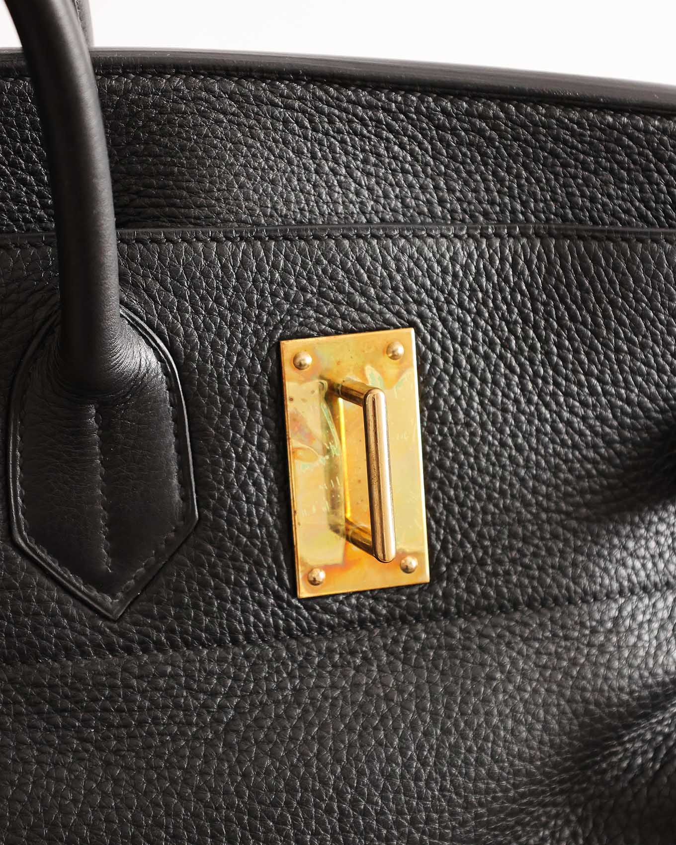 Up for sale is this beautiful Hermès HAC Haut à Courroies 50 in Togo leather. This bag is made of super soft and thick black grained calfskin and features the rather rare Permabrass hardware.