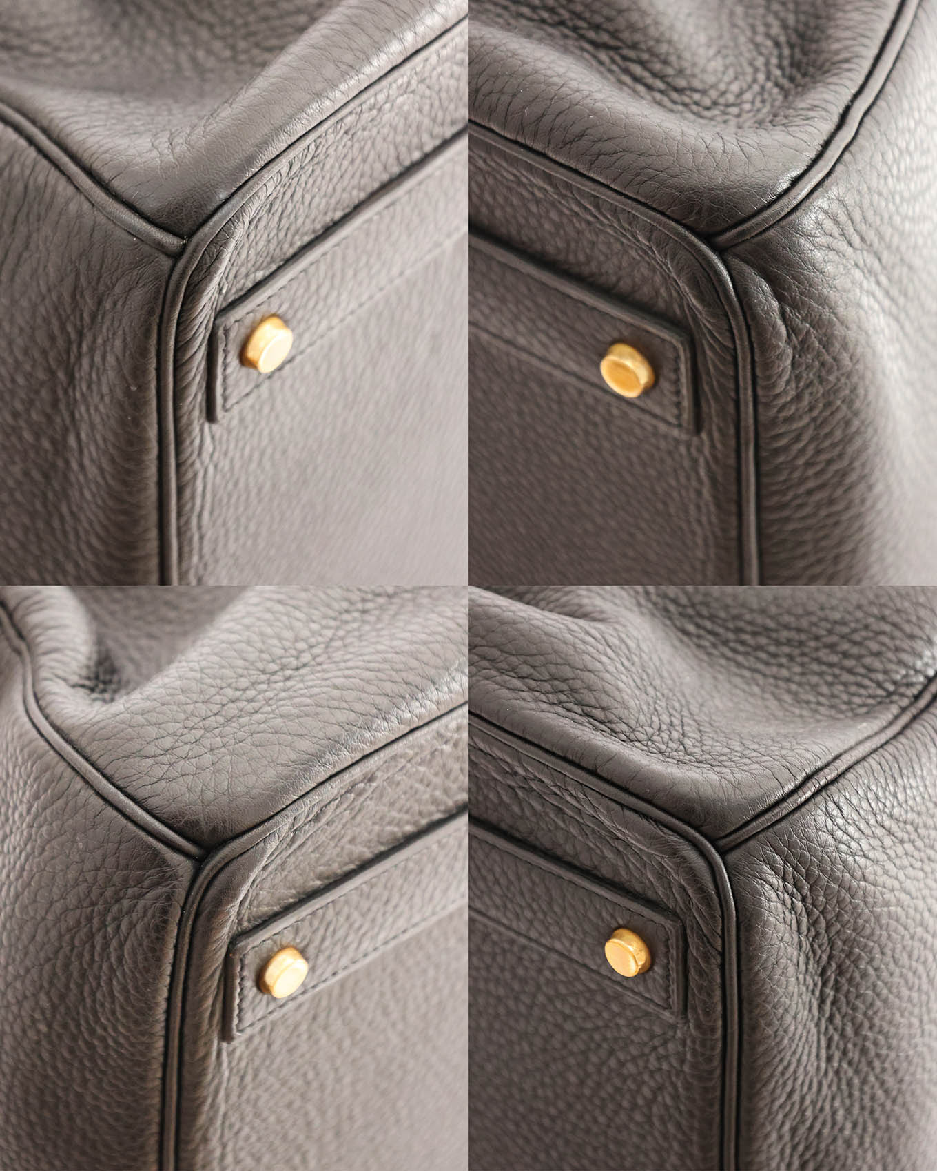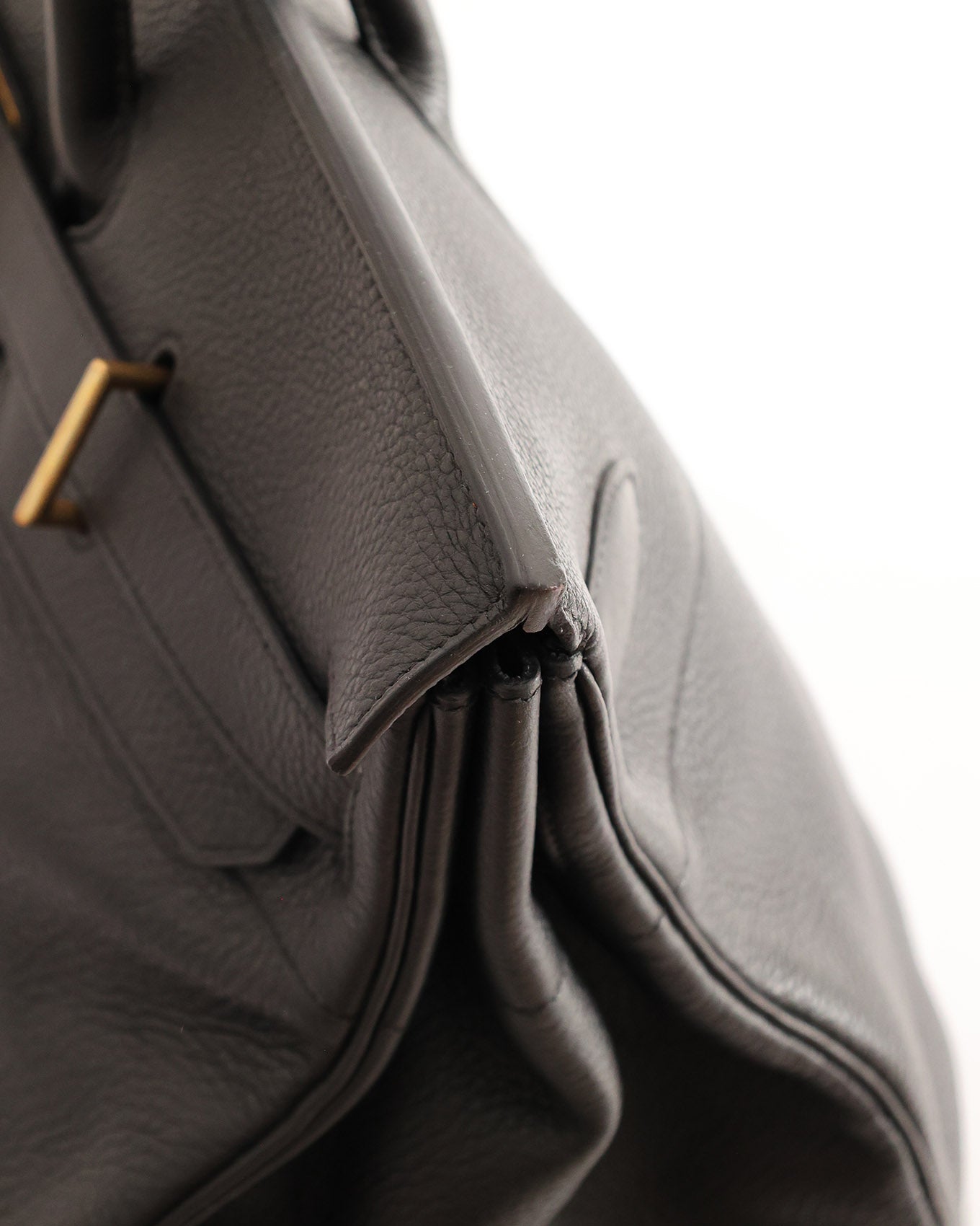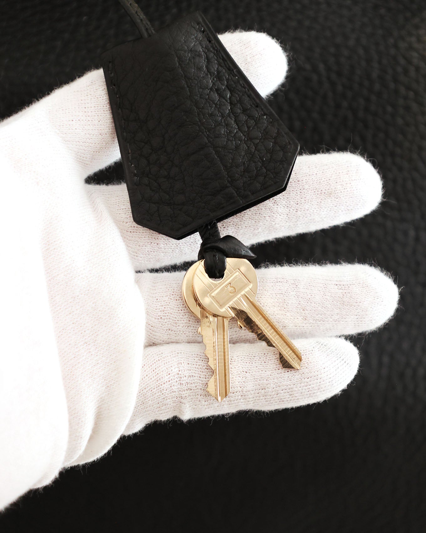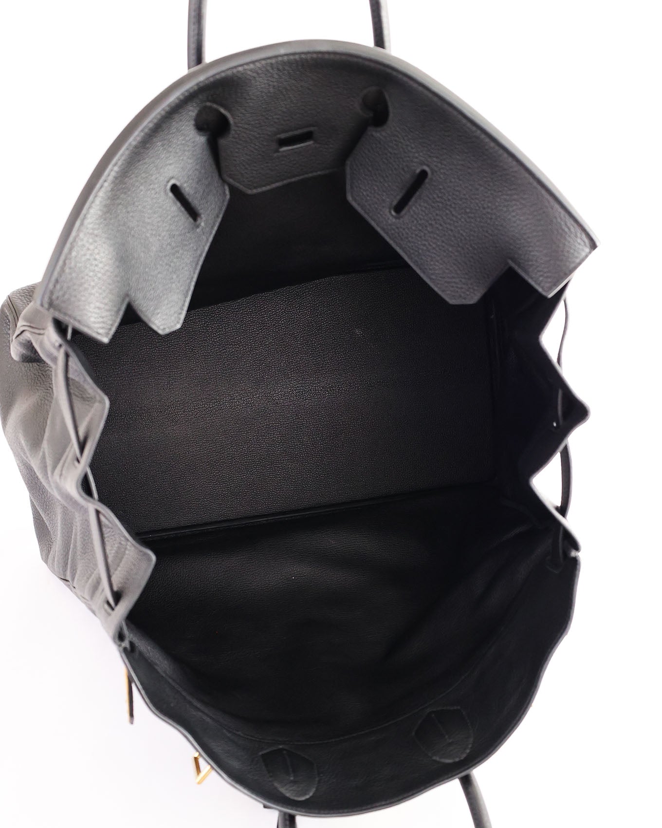 Up for sale is this beautiful Hermès HAC Haut à Courroies 50 in Togo leather. This bag is made of super soft and thick black grained calfskin and features the rather rare Permabrass hardware.