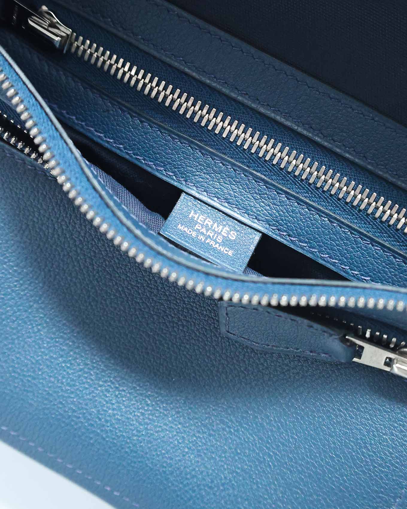 This rare Hermès Cityslide PM in Blue de Malte Clemence leather (2018) is a stylish and functional waist/cross-body bag designed for everyday elegance. It features soft Clemence texture, brushed palladium hardware (BPHW), and a compact profile of 30 × 15 cm.