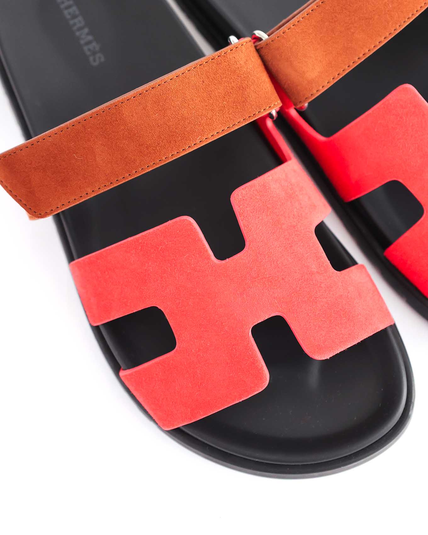 Hermès Chypre Gold / Rouge Cinetique Suede Sandals