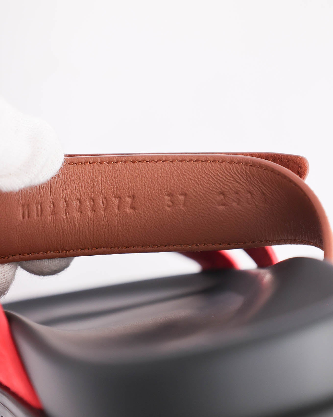This elegant pair of Hermès Chypre sandals in Rouge Cinetique & Gold Suede (EU 37) is perfect for those who seek luxury in every detail. With the signature H-cut suede design, adjustable strap, and comfort-focused craftsmanship, these sandals elevate any summer or resort wardrobe.
