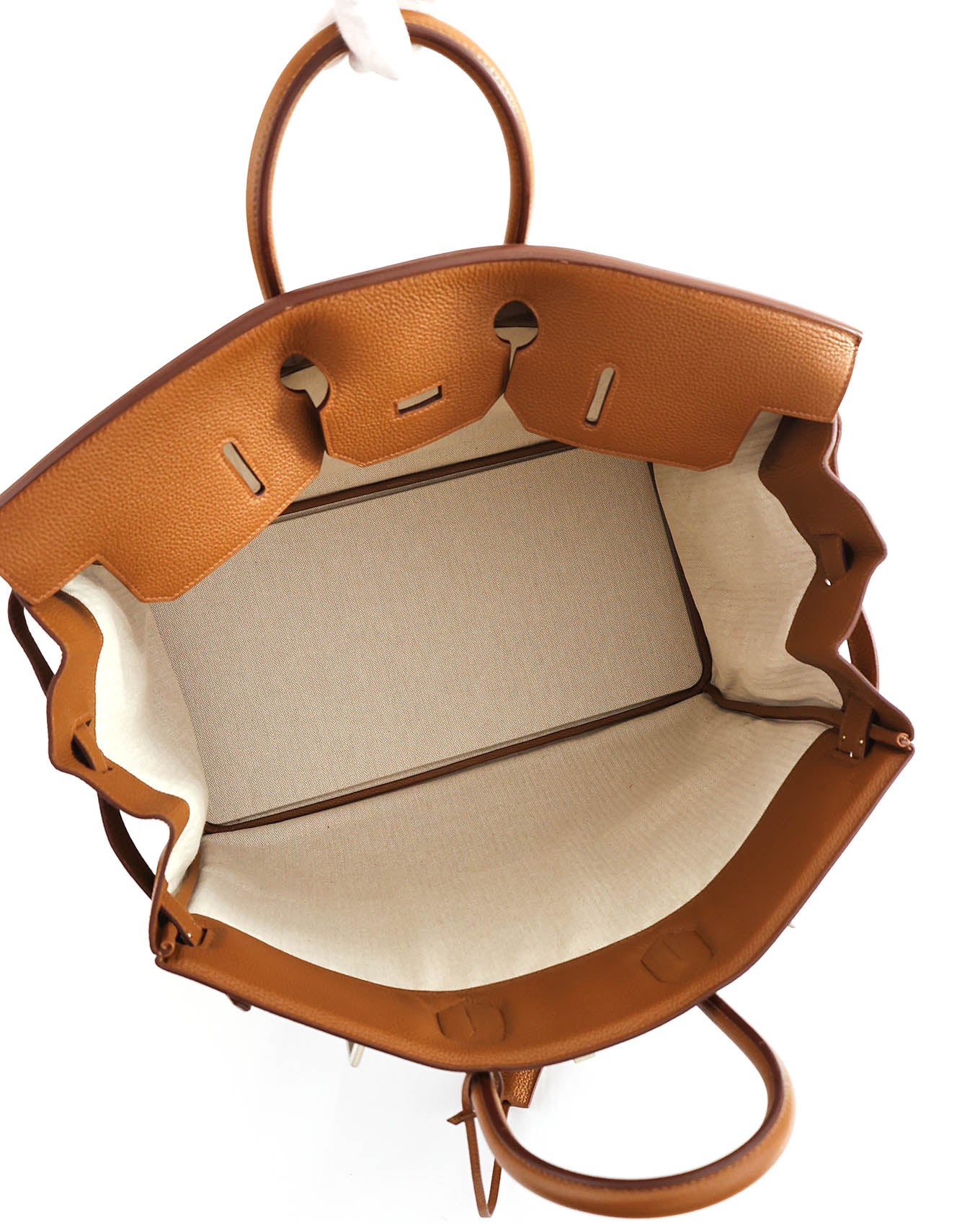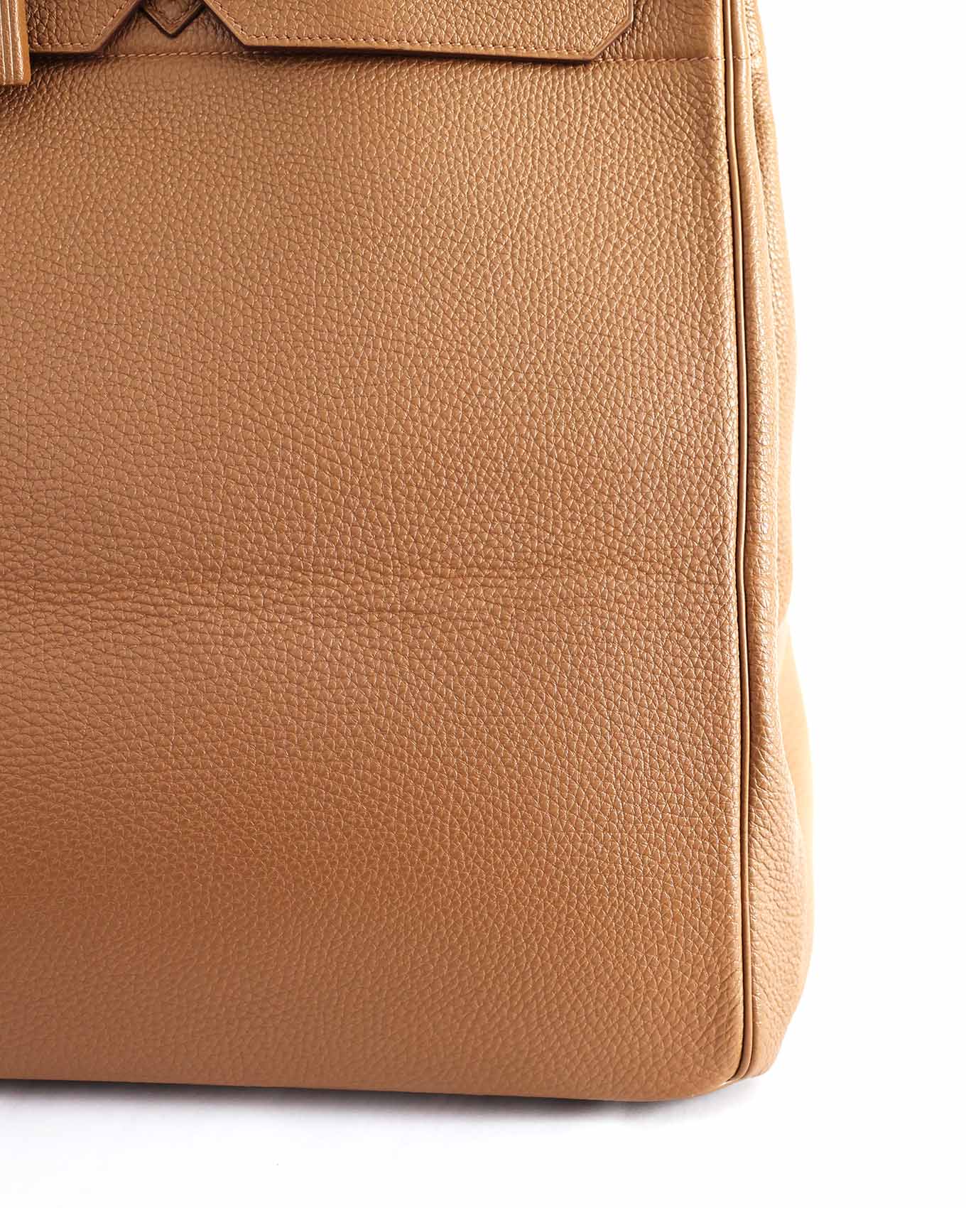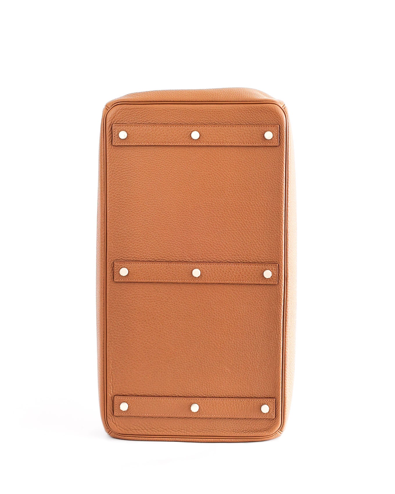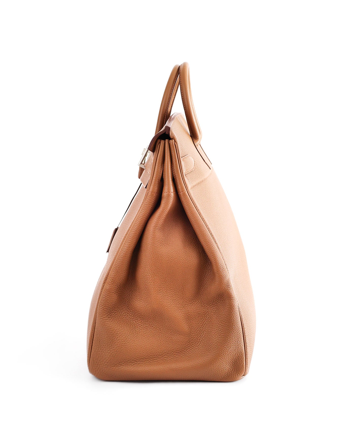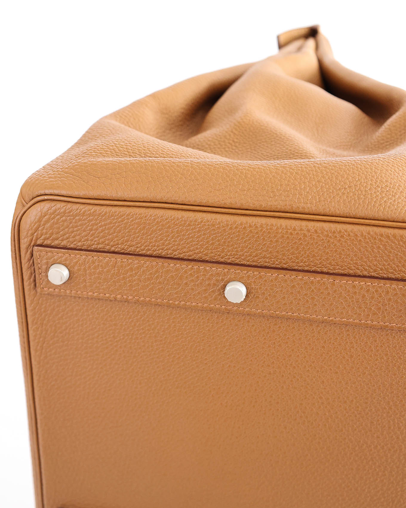 This rare Hermès HAC 50 in Azelan Togo leather (2014, R-Square stamp) is a high-impact travel bag, combining size, durability, and style. The brushed palladium hardware and spacious Haut à Courroies silhouette make it ideal for collectors and lovers of bold luxury.