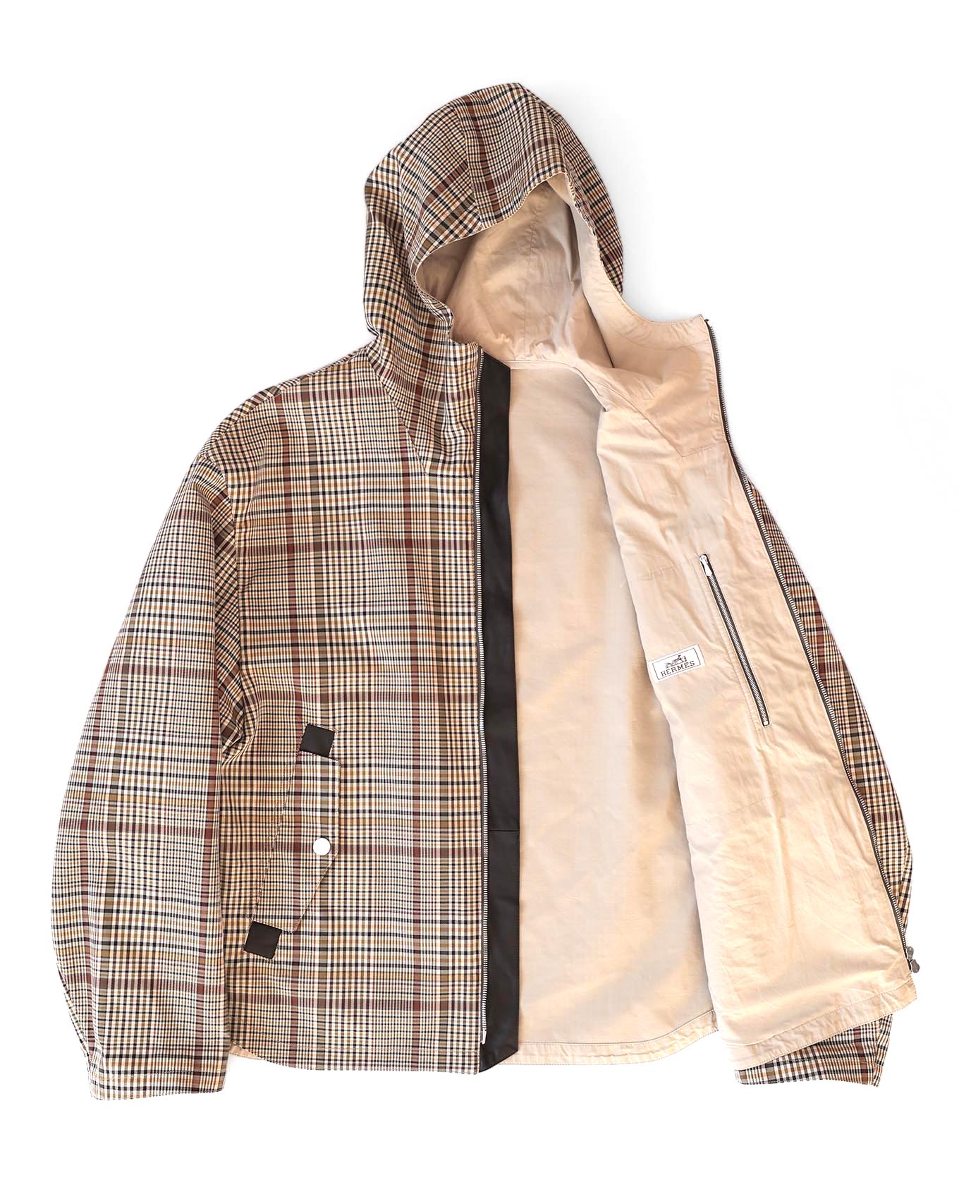 Hermès Mens FW21 Checkered Water Repellant Windbreaker Jacket