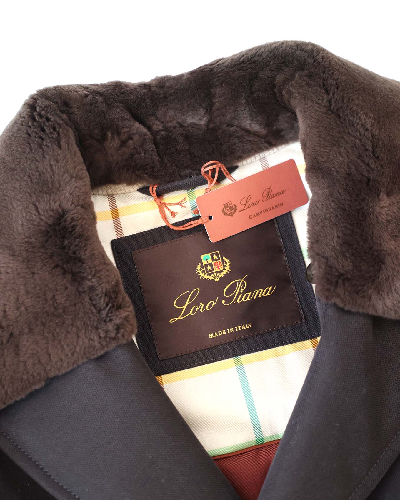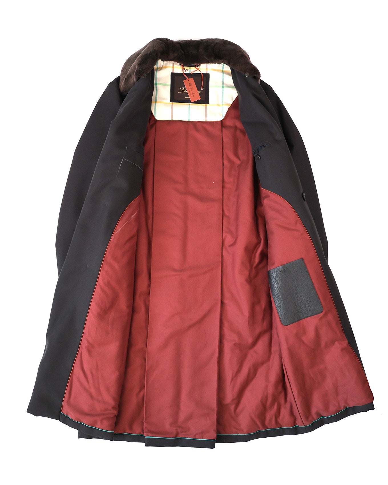 Loro Piana Black Belted Heavy Cotton Fur Collar Coat